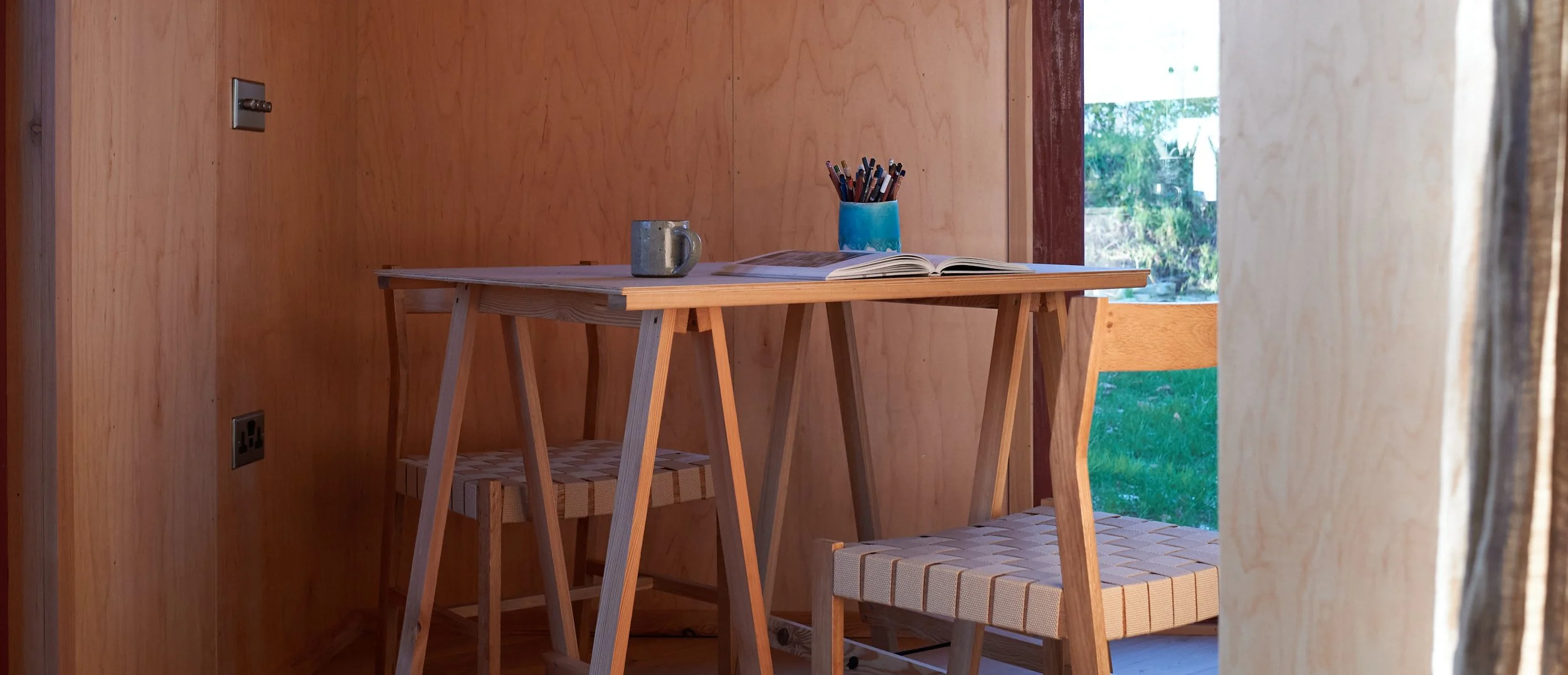 A creative retreat, tucked away, on the wild North Devon coast. Architectural cabins and art workshops.